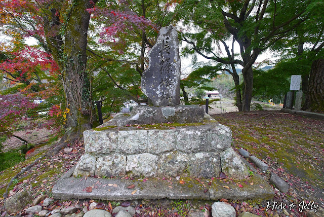 堅樹植木碑,為了紀念鳥居強右衛門而植的樹,不知道是不是後方這棵已經開始轉紅的大楓葉呢?