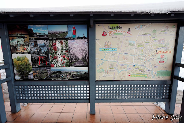 從車站走到浪岡城約2.4公里,一路上都有路標指示,不會走錯路。車站附近還有看起來很有歷史感的溫泉錢湯,在這寒冷的冬季,應該生意很好。