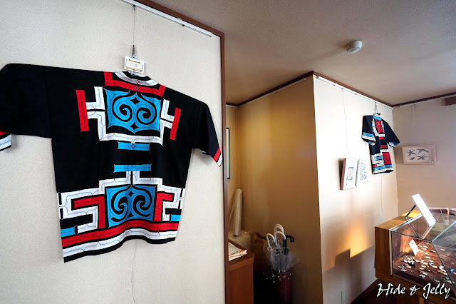 大廳旁有一個小房間,以販賣愛努族的手工藝品為主,一進去就可以看到愛努圖騰的傳統服飾,很有特色。